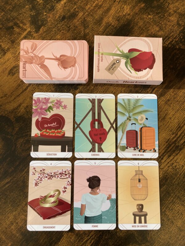 Juste parfait ! J’adore le format carte parfait à mon sens, le côté brillant des cartes, elles glissent parfaitement. Le thème est super également car le fond est sentimental mais il peut répondre à d’autres sujet. Vraiment très bien, continuez ainsi à créer ce genre d’Oracle. Merci bcp 🤗🤗